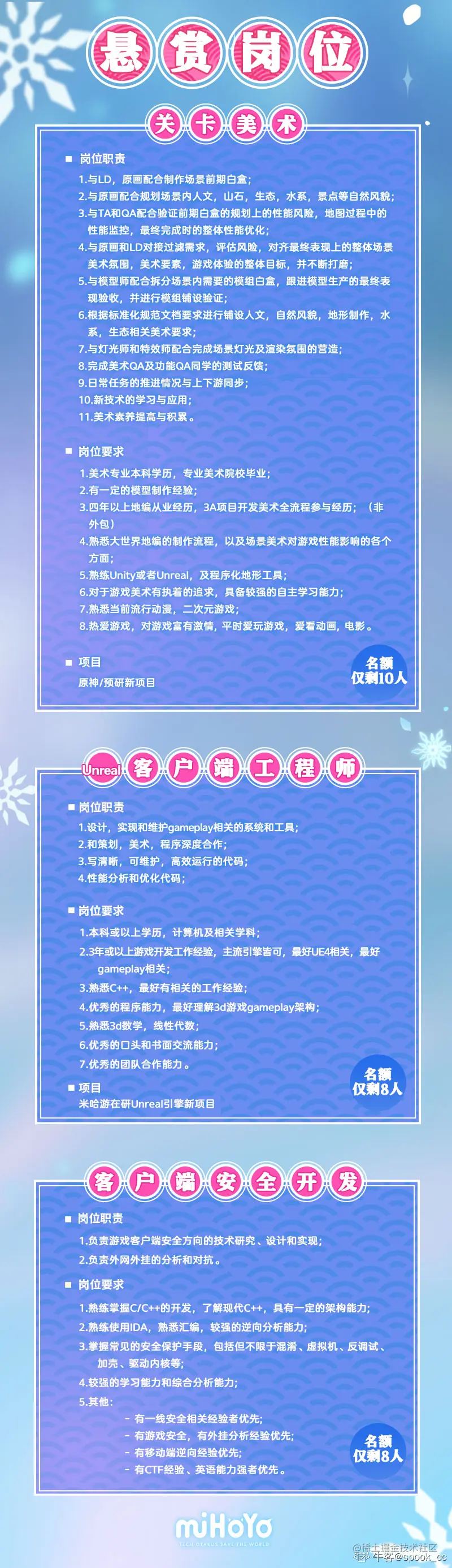 - 方式二、请将简历以**“姓名+岗位+电话”**命名发至我的企业邮箱chen.zhang02@mihoyo.com,并在邮件中备注 「掘金求职」