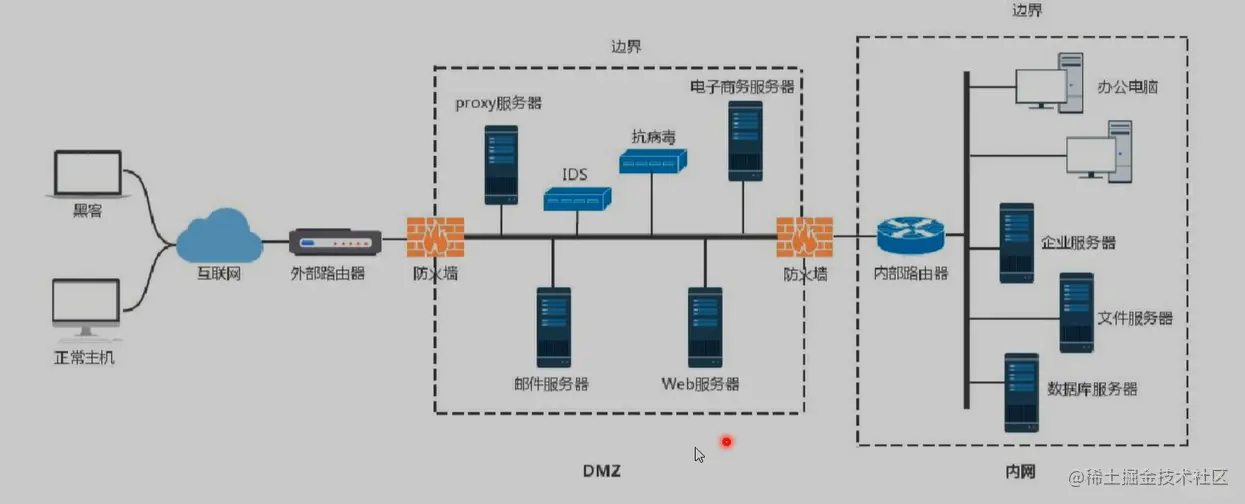 在实际的渗透测试中,大多数情况下,在web环境中拿到的权限都在dmz中。这个区域不属于严格意义上的内网。如果访问控制策略配置合理,dmz就会处在从内网能够访问DMz,而从dmz访问不能进入内网的状态。