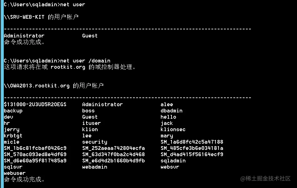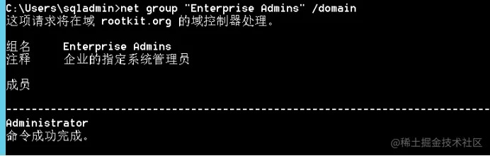 net group “Enterprise Admins” /domain 查询管理员用户组里面的成员