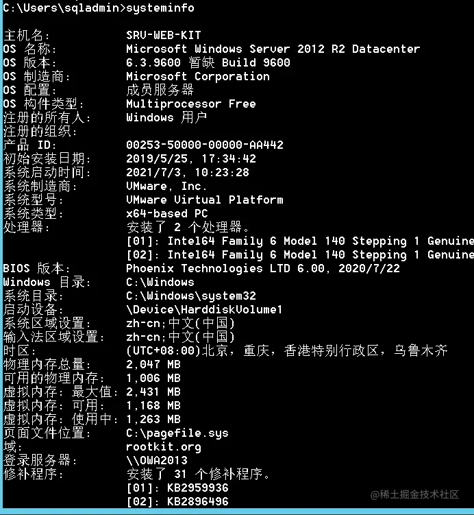 目的:为了了解当前服务器的计算机基本信息、防护的强弱,为后续判断服务器角色、网络环境做准备。