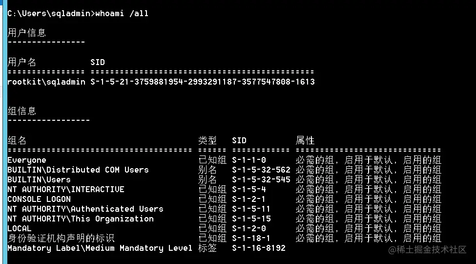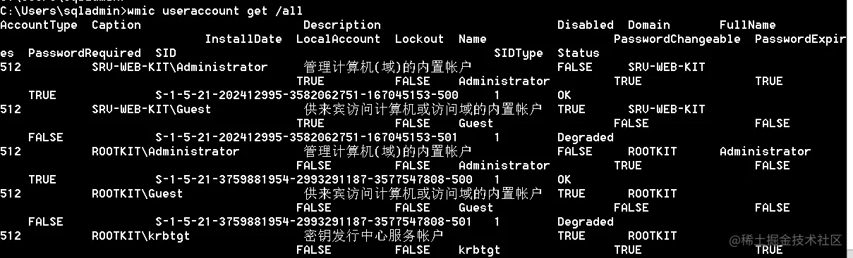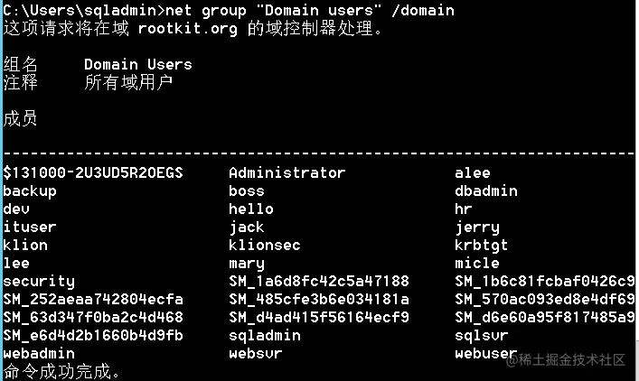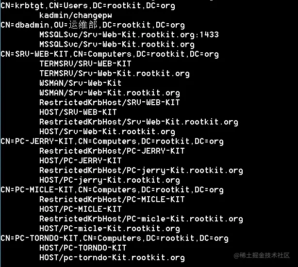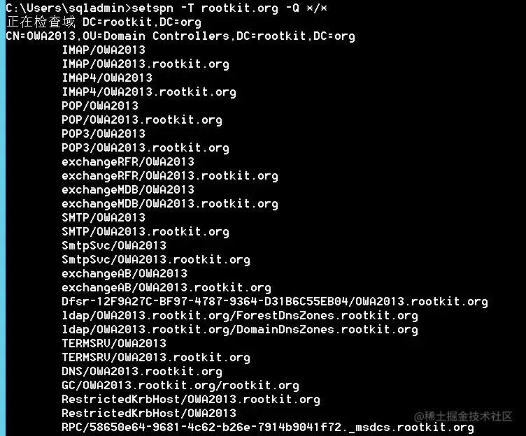 setspn -T rootkit.org -Q */* 可以发现内网存在mssql等服务