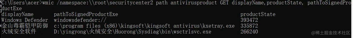 经过个人测试,这条命令在这个环境内是不可以用的,但在本机进行测试时,可以清晰的看到所有防护软件,所以这里就介绍一下。