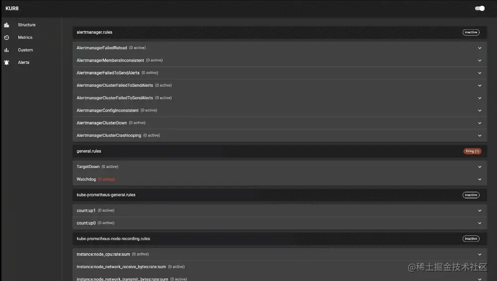 KUR8 是一个开源的 Prometheus 监控可视化仪表板,兼容 PromQL,可查询指标、查看告警、创建自定义图表。
