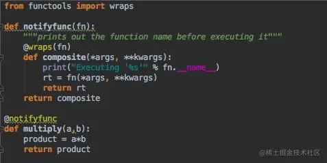 python中元编程被使用最广泛的一个位置就是装饰器,装饰器就是用来改变某个方法执行行为的一类方法。换句话说,装饰器就是以某个方法为输入,然后输出另外一个方法。举个例子如下: