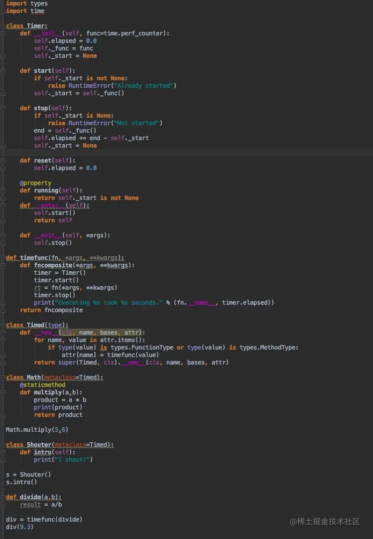 下面这段代码,使用了元类去记录代码的执行时间