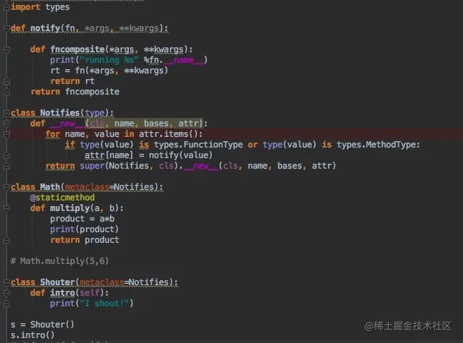 元编程依赖于python的一个叫做元类的概念。元类就是当你的某段代码在被执行的过程中,另外一段代码同时在被执行。维基百科上说的很好,在面向对象编程中,元类的实例还是类。