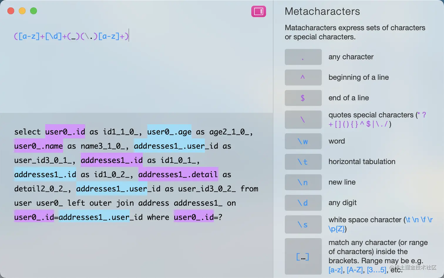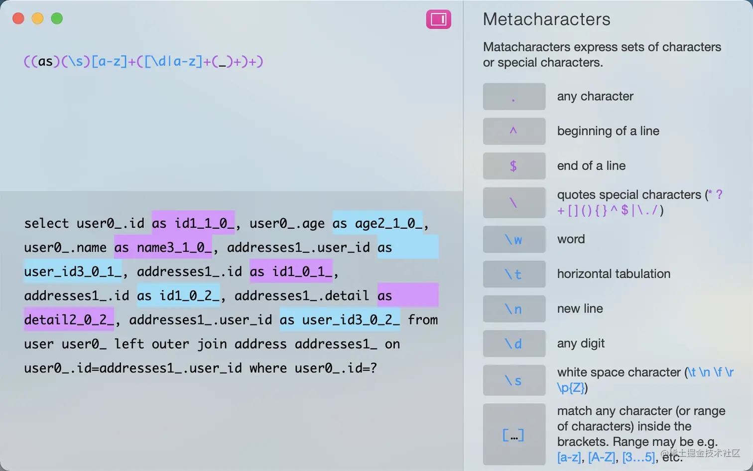 现在有了SQL,就剩下怎么处理了,其实可以使用正则表达式。