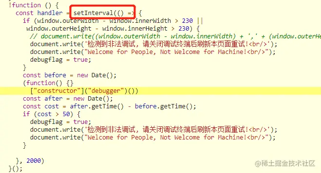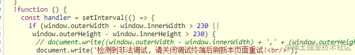 4、访客打开控制台,被已经加载的检测逻辑检测,完成反调试