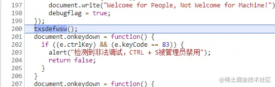 通过堆栈可以看到txsdefwsw这个方法调用了debugger