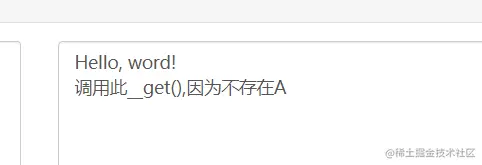 <?phpclass Test { public $n='Hello, word!'; // \_\_get():访问不存在的成员变量时调用 public function \_\_get($name){ echo '调用此\_\_get(),因为不存在'.$name; }}$a = new Test();// 存在成员变量n,所以直接访问echo $a->n;echo "\\n";// 不存在成员变量A,所以调用\_\_getecho $a->A;?>