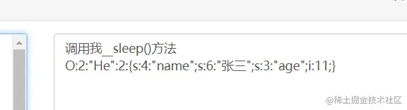 <?phpclass He{ public $sex; public $name; public $age; public function \_\_construct($name, $age, $sex) { $this->name = $name; $this->age = $age; $this->sex = $sex; } public function \_\_sleep() { echo "调用我__sleep()方法\\n"; return array('name', 'age'); }}$HH = new He("张三",11,"男"); // 初始赋值echo serialize($HH);echo "\\n";?>