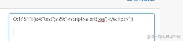 <?phpclass S{ var $test = "<s cript>a lert('xss')</s cript>";}$a = new S();echo serialize($a);?>