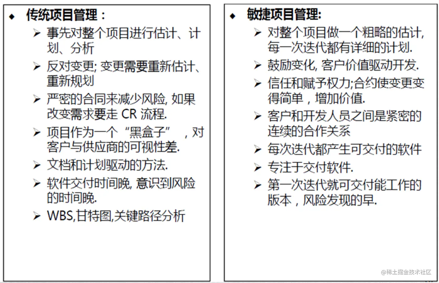 传统项目与敏捷项目的对比