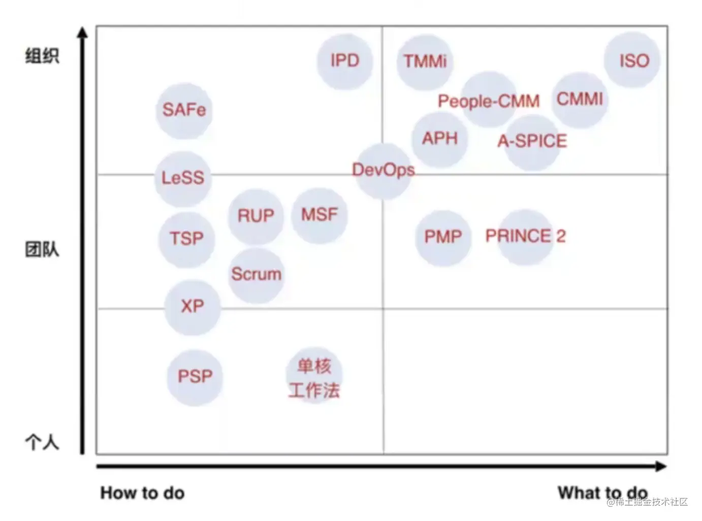 如上图所示,纵向从个人到组织,横向如何做到做什么。