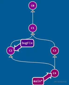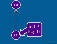 现在我们切换到了 main 上。把它 rebase 到 bugFix 分支上