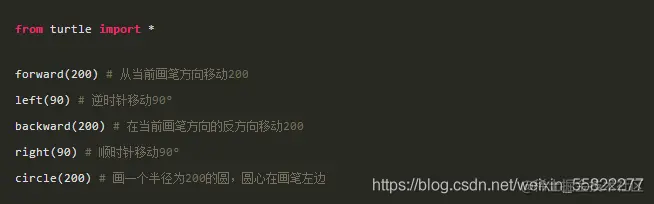 然后接下来我们需要了解一下turtle的基本语句,为画图打好基础。