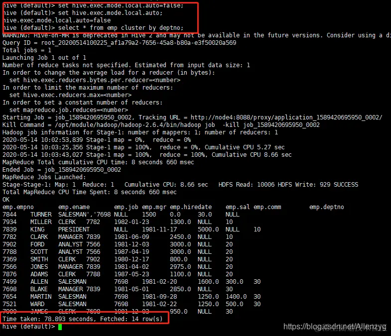 1)开启本地模式,并执行查询语句