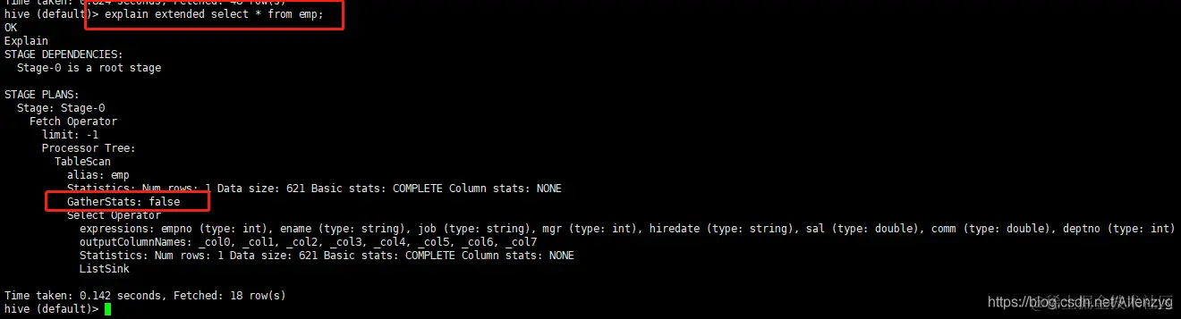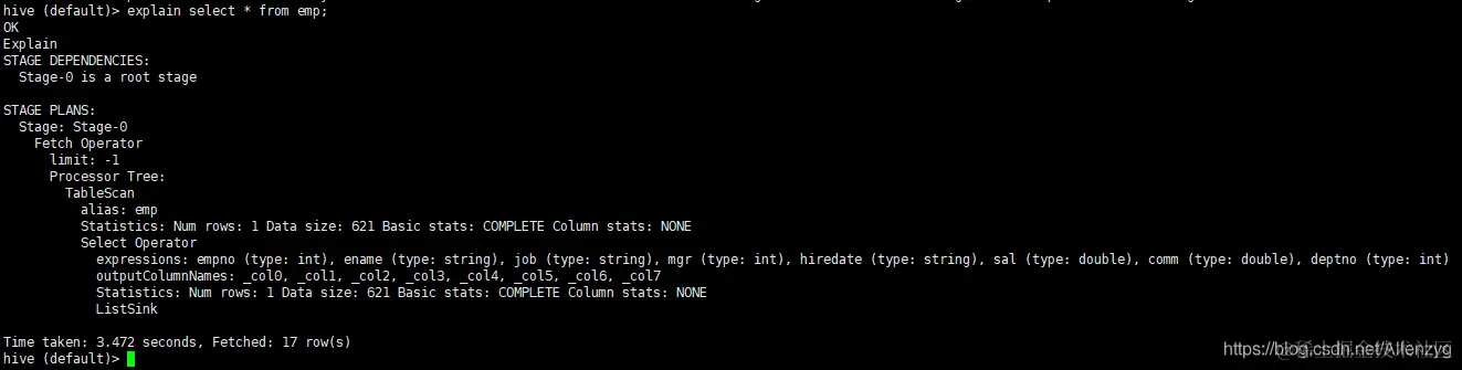 hive (default)> explain select * from emp;
