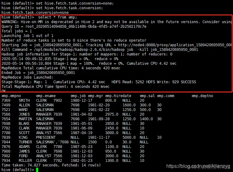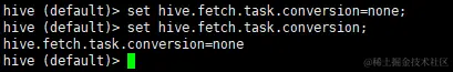 hive (default)> set hive.fetch.task.conversion=none;