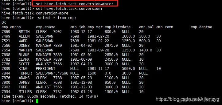 hive (default)> set hive.fetch.task.conversion=more;