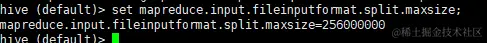hive (default)> set mapreduce.input.fileinputformat.split.maxsize=100;