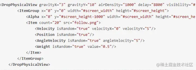 在这里我们使用到了透明度动画,位移动画,缩放动画,以及下落动效。