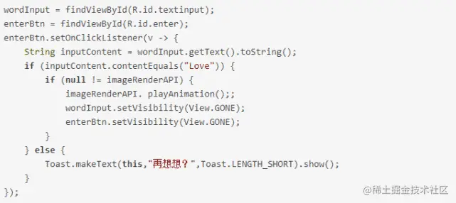 还记得前面留下的输入框和按钮吗?我们使用关键字“Love”来进行动画播放。只需要通过imageRenderAPI.playAnimation()即可触发: