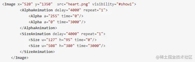 相会之后在中心将出现跳动的红心,这里用到了透明度动画及缩放动画的叠加特效: