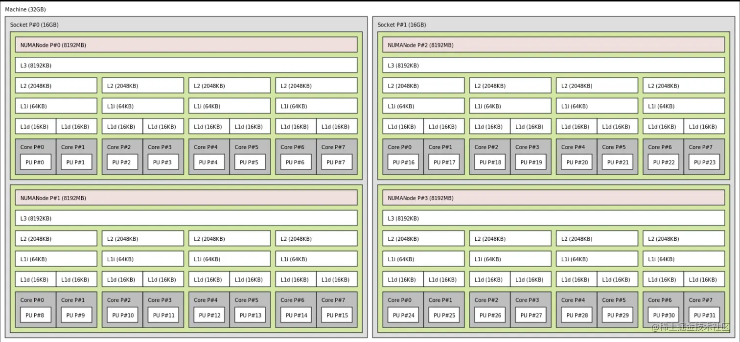 随着现代处理器的不断进步,SMP架构让内存跟不上CPU的处理速度,导致大量的内存被“浪费”,所以后来人们改进出了NUMA的架构: