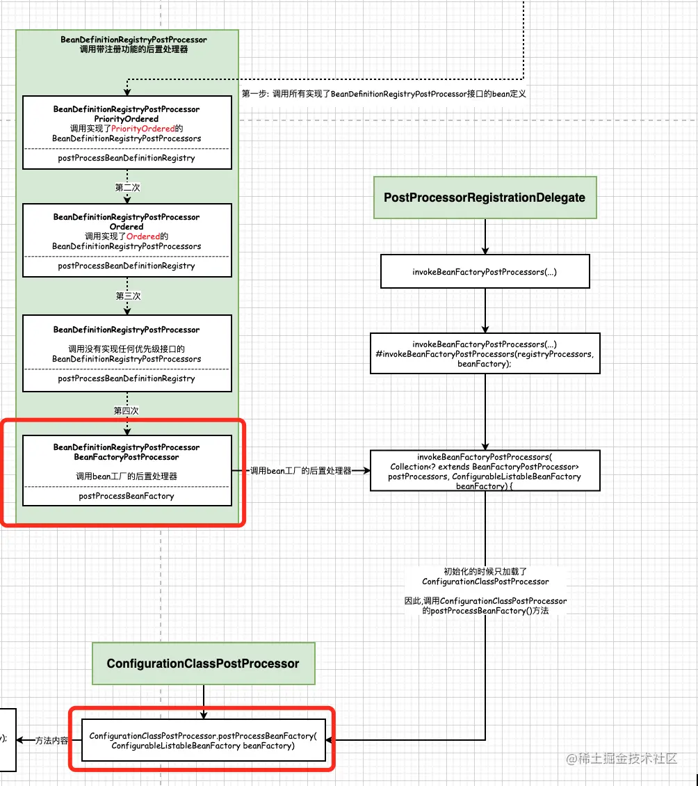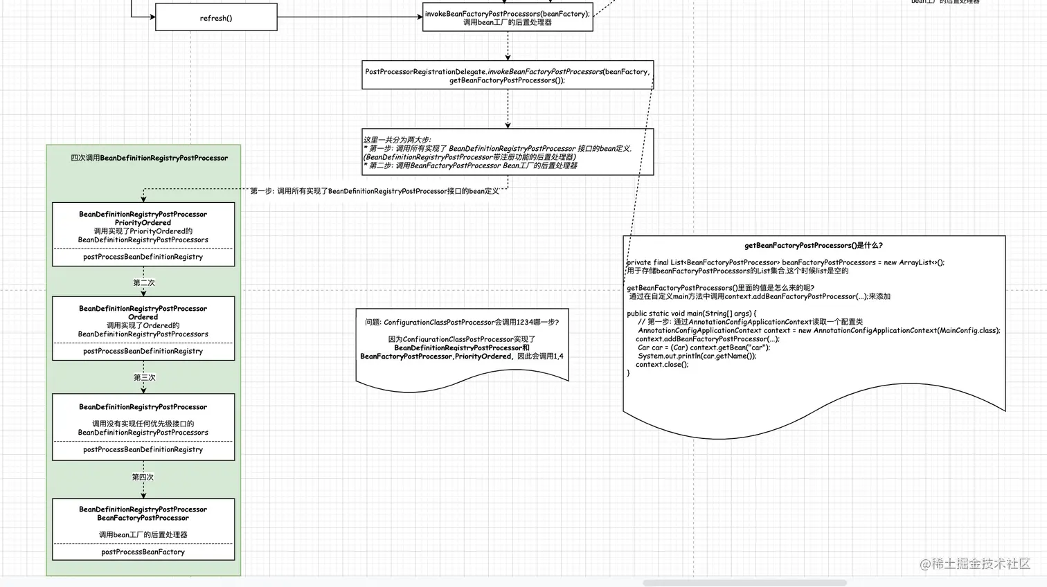 * 这里要调用bean工厂的后置处理器. 这么多创世纪的PostProcessor, 只有一个PostProcessor实现了