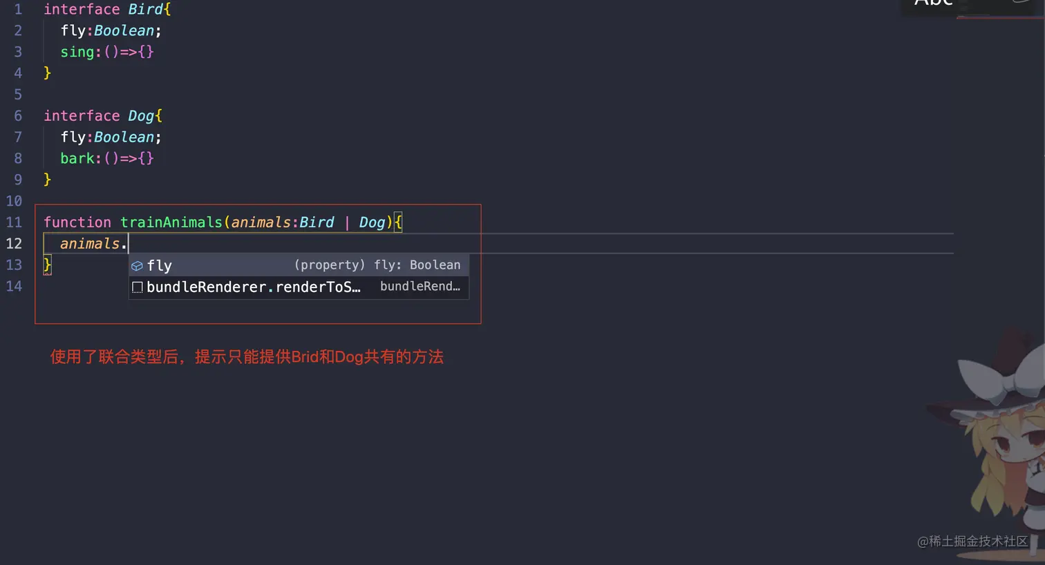 ts代码提示只能给出共有的方法或者属性