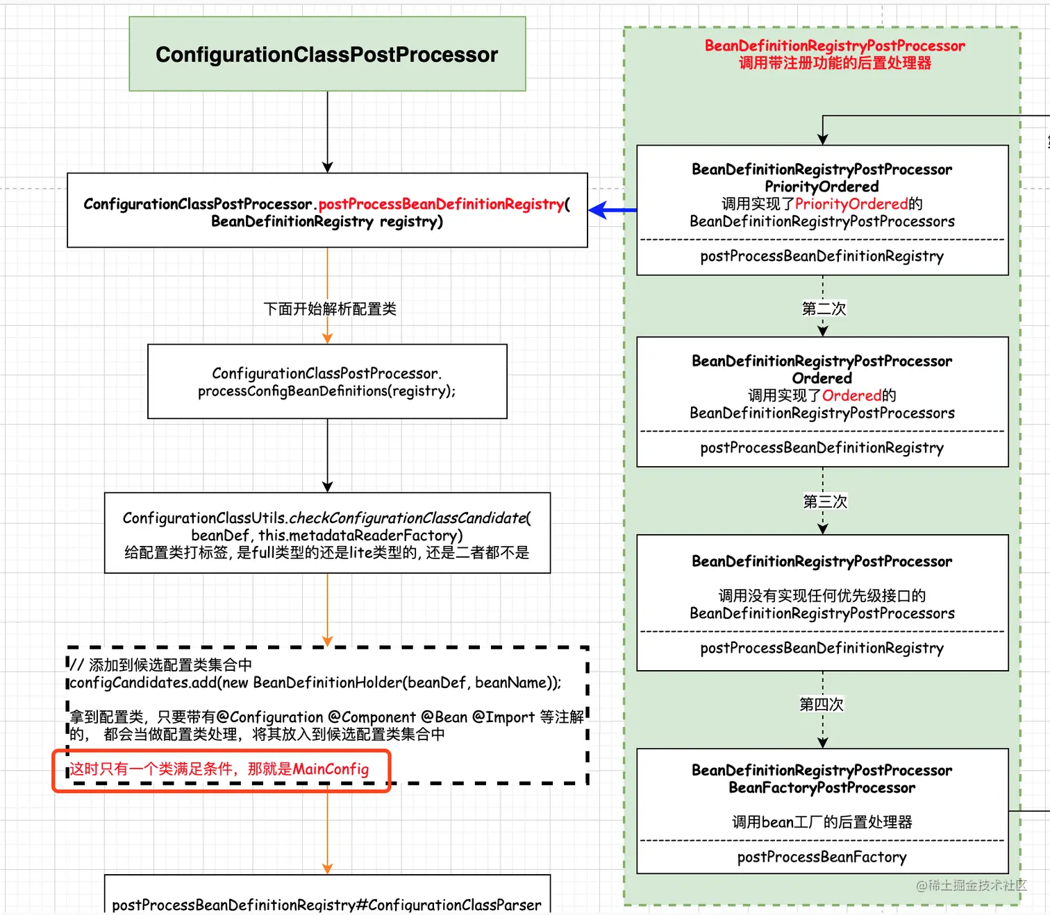// 在所有创世纪的后置处理器中, 只有 internalConfigurationAnnotationProcessor 实现了 BeanDefinitionRegistryPostProcessors 和 PriorityOrdered
