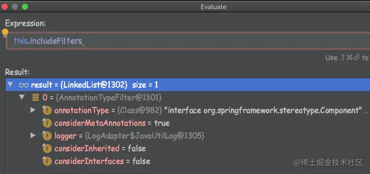 我们看到这里有this.includeFilters.包含的过滤器. 这里面是有值的