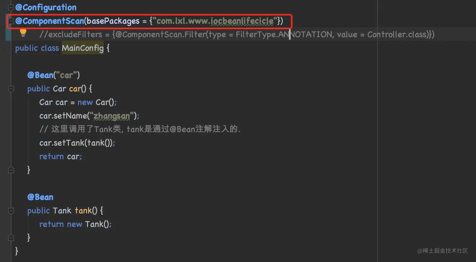 // 在这里面排除类配置类本身
