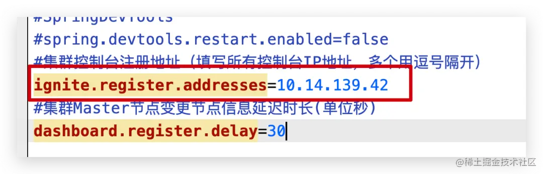 application.properties文件中只需要修改配置ignite.register.addresses。填上控制台集群中所有机器的IP即可。其他配置和Sentinel的默认控制台完全一样。