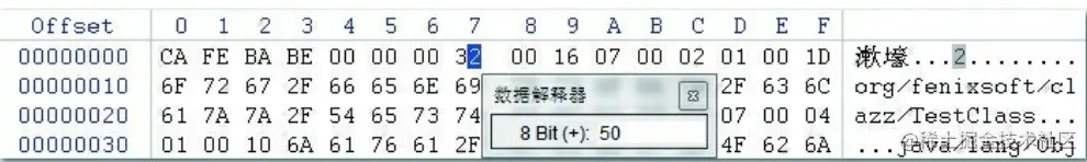 Class文件是一组以8个字节为基础单位的二进制流,各个数据项目严格按照顺序紧凑地排列在文件之中,中间没有添加任何分隔符,这使得整个Class文件中存储的内容几乎全部是程序运行的必要数 据,没有空隙存在。当遇到需要占用8个字节以上空间的数据项时,则会按照高位在前 [2] 的方式分割 成若干个8个字节进行存储。