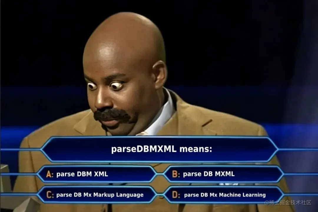 图译:parseDBMXML 代指什么:A、解析 DBM XML 。B、解析 DB MXML。C、解析 DB Mx 标记语言。D、解析 DB Mx 机器学习。