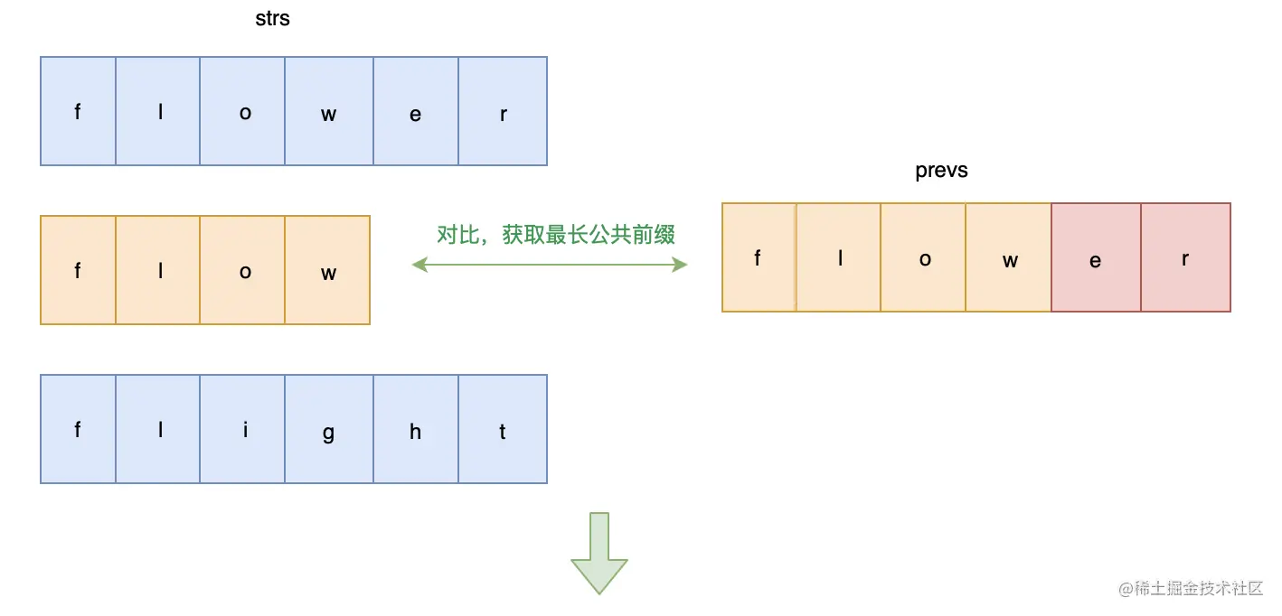 解题思路: 从前往后一次比较字符串,获取公共前缀