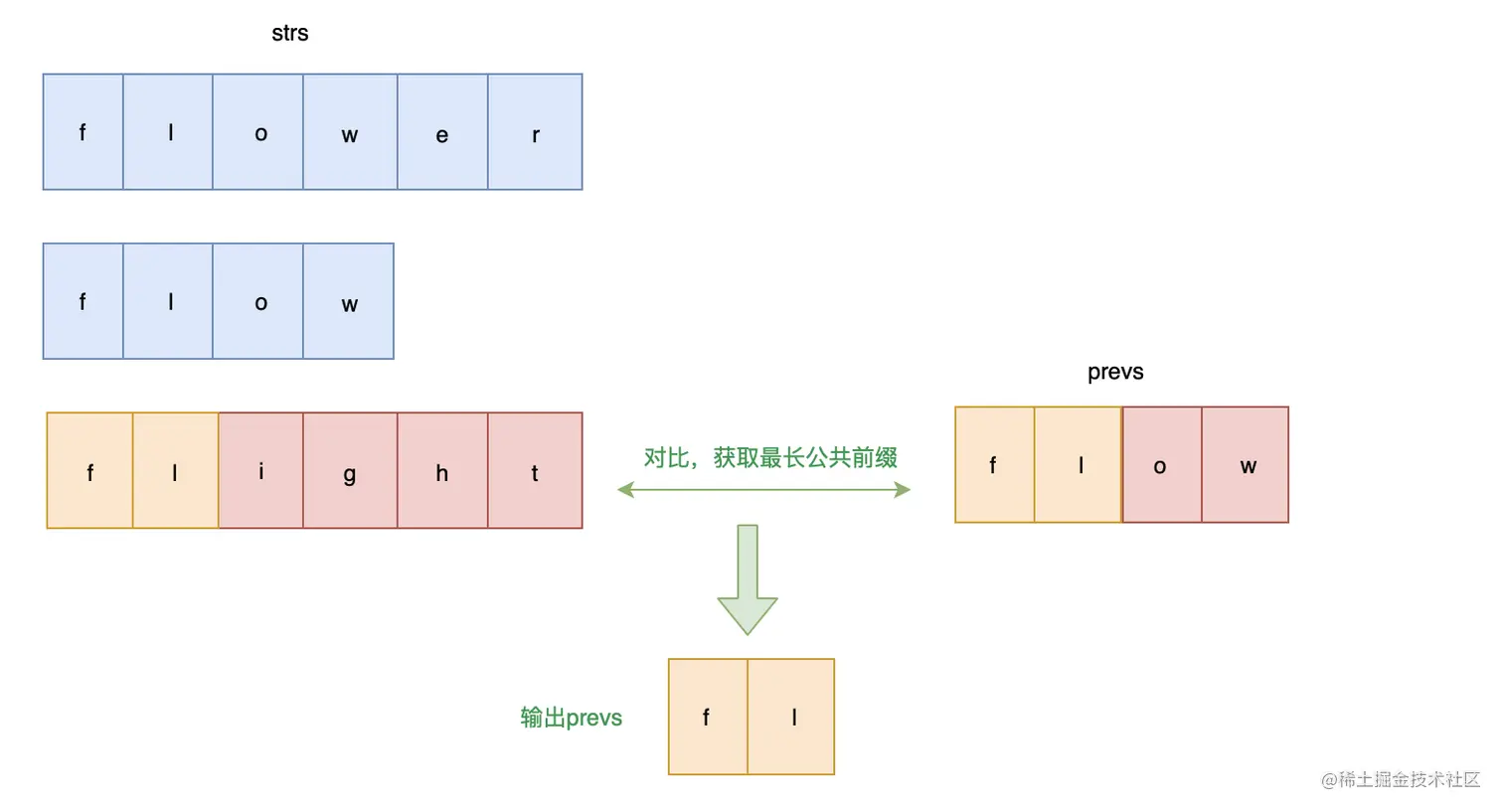 输入:strs = ["flower","flow","flight"] 输出:"fl"