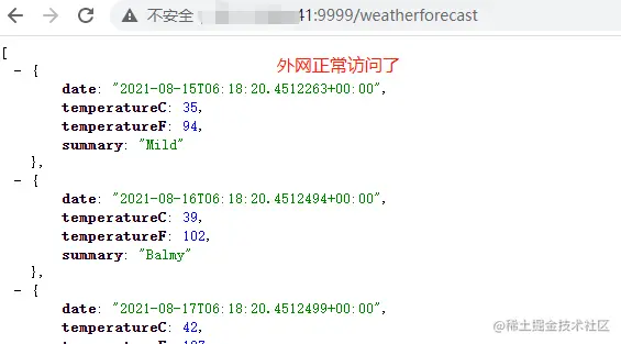 测试访问看看,只要配置了云服务器的安全组和防火墙放开9999端口,那么外网就可以访问了,如下: