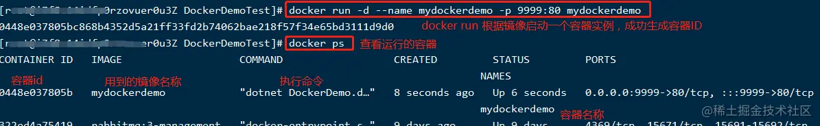 docker run指令根据镜像启动容器了,即启动我们的项目docker run -d --name mydockerdemo -p 9999:80 mydockerdemo-d:后台模式运行;