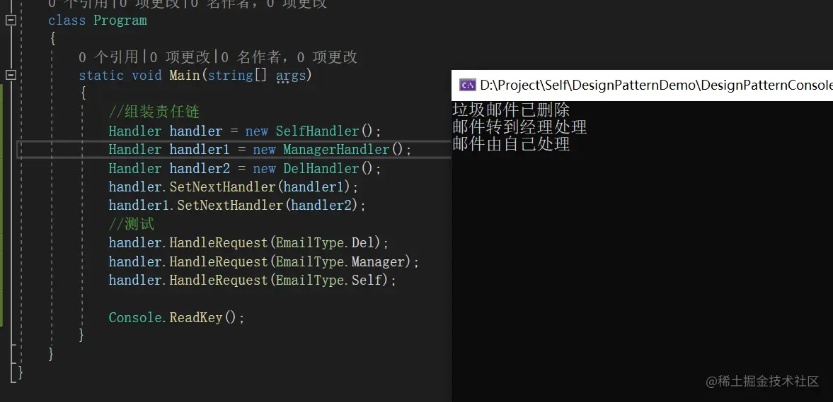 14 Console.WriteLine("邮件由自己处理");