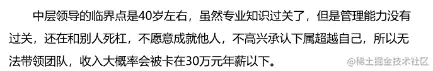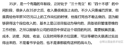 从36岁到48岁这个时间片段区间,是一个人从职业生涯规划迈向事业生涯规划的转变过程,从这个阶段开始是从做事 情转化成管理下属,跨部门沟通联合同事,一起协同完成项目的过程,这时候是一个人从管理者到领导者的修炼和进化。