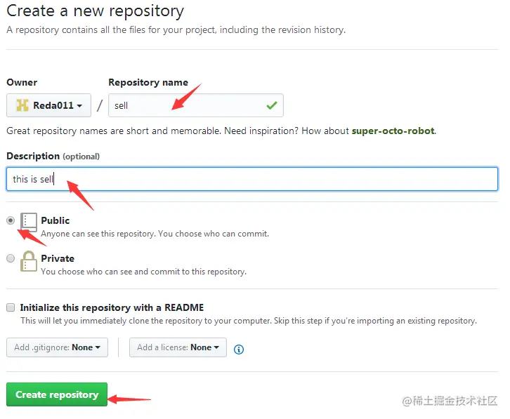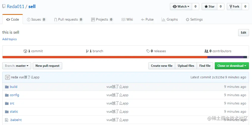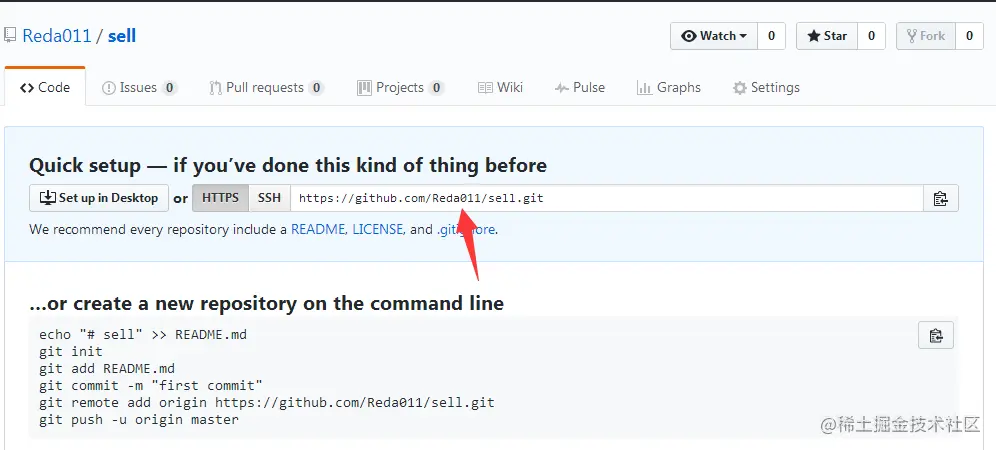 如此,一个名为sell的github仓库就创建成功了,我们可以将自己的本地项目上传到sell