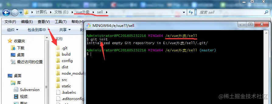 初始化成功后你会发现项目里多了一个隐藏文件夹.git(.git是隐藏文件,可通过设置显示隐藏文件夹令其显示)