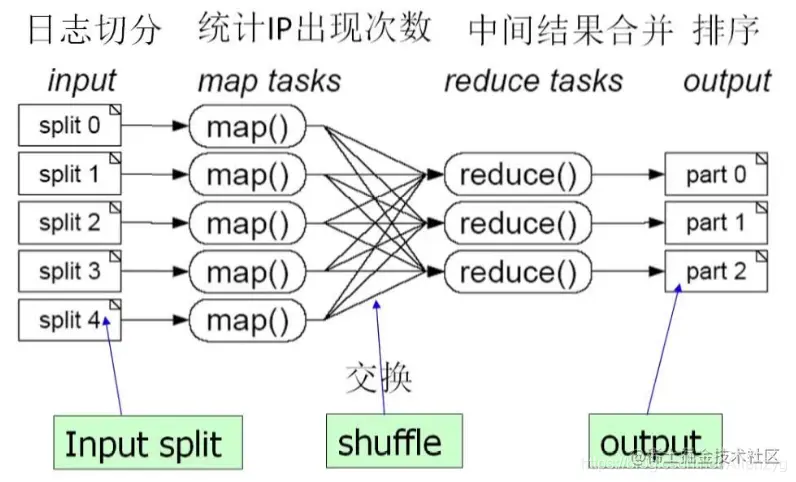 思想:分而治之,将一个大任务分成多个小的子任务(map),并行执行后,合并结果(reduce)