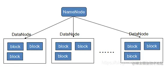 NameNode:存放元数据(文件和数据块的映射表;数据块和数据节点的映射表)是一个管理节点