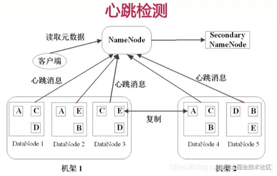 2.心跳检测,datanode定期向namenode发送心跳消息。查看是否有datanode挂掉了。