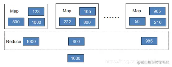 MapReduce会这样做:首先数字是分布存储在不同块中的,以某几个块为一个Map,计算出每个Map中的最大值,然后将每个Map中的最大值做Reduce操作,Reduce再取最大值给用户。