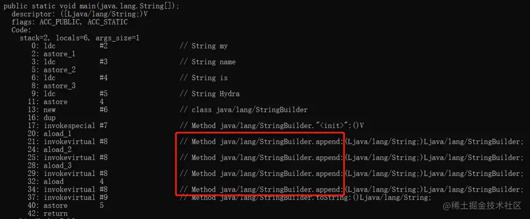 然后使用javap对字节码文件进行反编译,可以看到在这一过程中,编译器同样会进行优化: